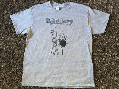 High n' Heavy's Slow Burning Rock n' Roll design (Zig Zag spinoff with the wizard) on grey cotton shirts. They fit well after a couple washes.