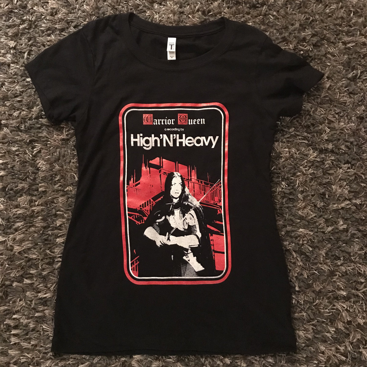 The Warrior Queen Album Cover design now in a cut for the ladies! Printed on Next Level T 60% cotton. Artwork by the ever amazing Branca Studio.